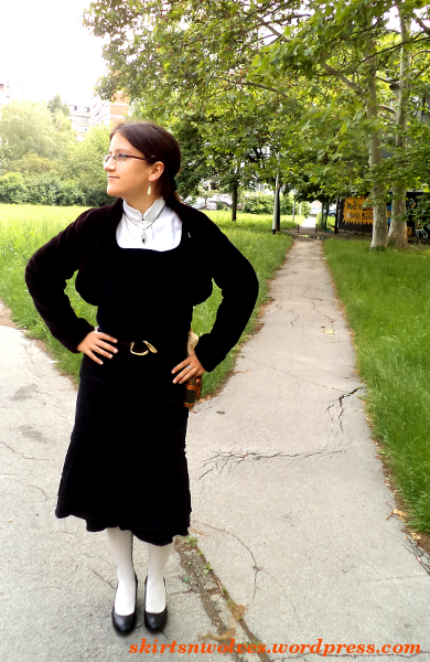 Not to say you should buy a dozen skirts from the get go – one skirtlike object of clothing should usually do. But if there’s any reasonable way for you to gather more skirts to try on – by sewing, borrowing or shopping in your own closet – do. I started with way too short, playful girly skirties – and to this day kept only the one almost reaching my knees. (There are some things you have to sacrifice for a job – not everything, though. I’d be heartbroken if I had to give up skirts – so I compromise by wearing those of appropriate length, and save the shorter ones for evening play.) Some people will hate the shape of a pencil skirt – some will understand it’s flattery to certain body types. Some will frown at hippie-like floor length ones – others will have wardrobes consisting almost entirely of those (I have a larper friend who qualifies). You should try at least a couple of different types to see if it’s really skirts you dislike – or just a certain cut, length or fabric.