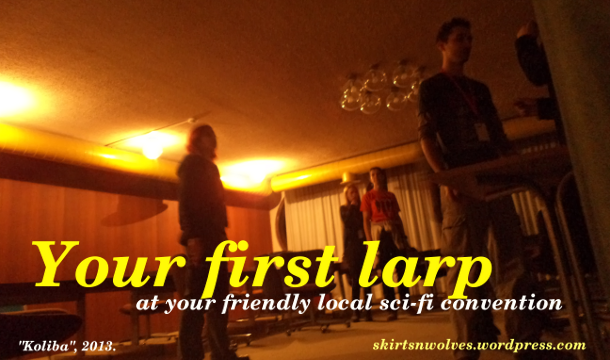 #2 Start small. Similar to #1, I’d suggest you try a short larp scenario first, if possible – like a chamber larp at a sci-fi convention or something. Many of the larpers I usually play with started that way, and even my first larp lasted four hours tops. If you can’t seem to find a shorter larp in your immediate vicinity, ask a GM you know (or ask someone to direct you at a GM) about whether they would consider running a shorter scenario for you and a couple of others (your friends of theirs, it really doesn’t matter). People are usually really thrilled about potential new co-players – larpers tend to like to share the hobby love. If even that isn’t possible, try taking on a smaller role in a longer-lasting event. The key is to observe whether you like this “live roleplaying” thing. Some people transition from tabletop RPGs to larp quite easily, some don’t. Your only obligation when you’re starting out is to find out wheter you like it.