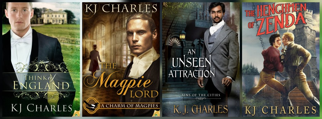 She’s been publishing her own work for a few years now – even re-issueing novels from publishers which have since gone under, like Samhain, one of her first houses – and, when you buy her (newer) work online, you know most of the proceeds go directly to the author. Working as a librarian has basically made me stop buying books – GASP – several years ago. (It comes with being something of a minimalist, too, and with having hobbies, like cosplaying, which require me to actually have at least some free space in the apartment.) But, I am more than pleased to hand over my money to KJ Charles – of course, for her ebook editions – because I know it will literally keep her writing on and on and providing this addict with more and more characters and storylines to fall in love with and write blog posts about them. She’s a part of a smallish niche – the only writer in said niche I’m currently reading, to be honest – and I’m honestly excited to be living in this wonderful new era of being able to purchase severals hours worth of quality, historical, queer entertainment from an artist such as her.